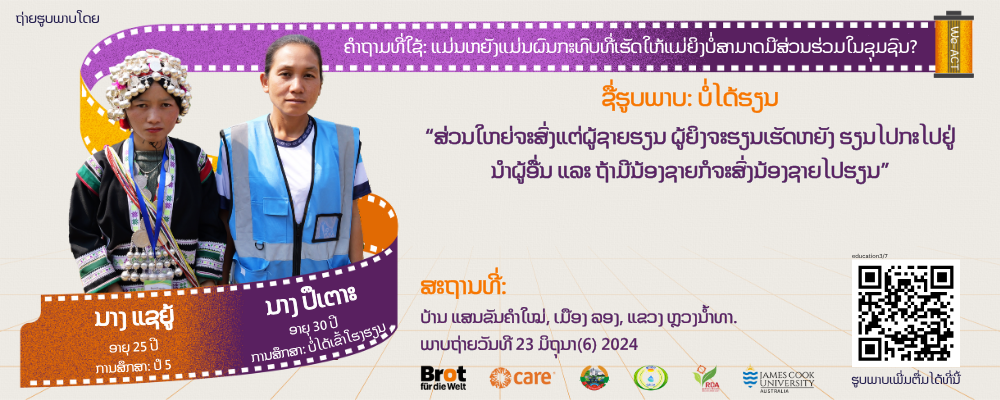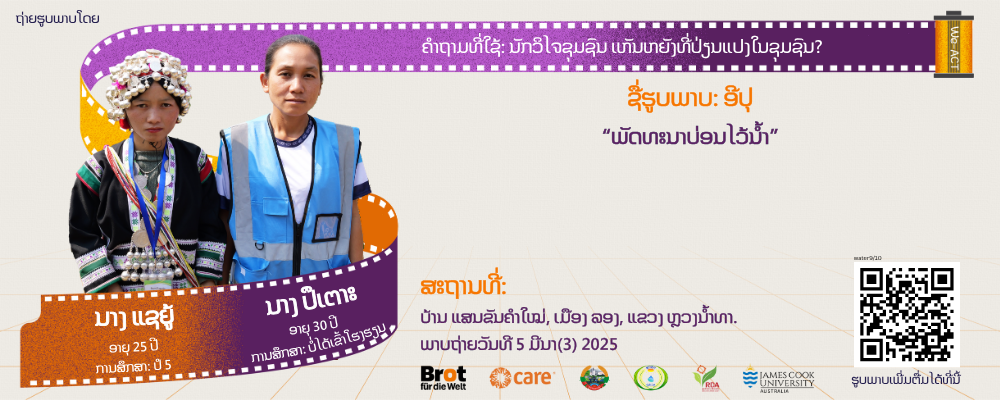 ໂຄງການ ສ້າງຄວາມເຂັ້ມແຂງໃນຊຸມຊົນເພື່ອການປັບໂຕເຂົ້າກັບການປ່ຽນແປງດິນຟ້າອາກາດແບບມີສ່ວນຮ່ວມ (We-ACT) ໂຄງການນີ້ ຖືກດຳເນີນຢູ່ທີ່ເມືອງລອງ ແຂວງຫຼວງນ້ຳທາ ເລີ່ມແຕ່ຕົ້ນປີ 2023-2025 ເປັນຄວາມພະຍາຍາມທີ່ເນັ້ນການສ້າງຂະບວນການຮ່ວມມື ແລະ ສົ່ງເສີມຄວາມສາມາດ ຂອງຊຸມຊົນ ໃນການຮັບມືກັບຄວາມທ້າທາຍຈາກການປ່ຽນແປງສະພາບດິນຟ້າອາກາດ, ໂດຍການຮ່ວມກັນ ຂອງອົງການແຄຣ໌ປະຈຳລາວ (CARE), ສະມາຄົມພັດທະນາກະສິກໍາ ແລະ ສິ່ງແວດລ້ອມແບບຍືນຍົງ (SAEDA) ແລະ ສູນພັດທະນາຊົນນະບົດ (RDA) ທີ່ໄດ້ຮັບການສະໜັບສະໜູນທຶນຈາກ ອົງການເຂົ້າຈີ່ໂລກ (Bread for the World) ໂຄງການໄດ້ເນັ້ນໃສ່ ສຶກສາ ແລະ ສົ່ງເສີມພາວະຄວາມເປັນຜູ້ນຳຂອງແມ່ຍິງທ້ອງຖິ່ນ ໃນການນໍາພາຊຸມຊົນຢ່າງມີສ່ວນຮ່ວມ ໃນການປັບຕົວສູ້ກັບສະພາບ ດິນຟ້າອາກາດທີ່ປ່ຽນແປງ.